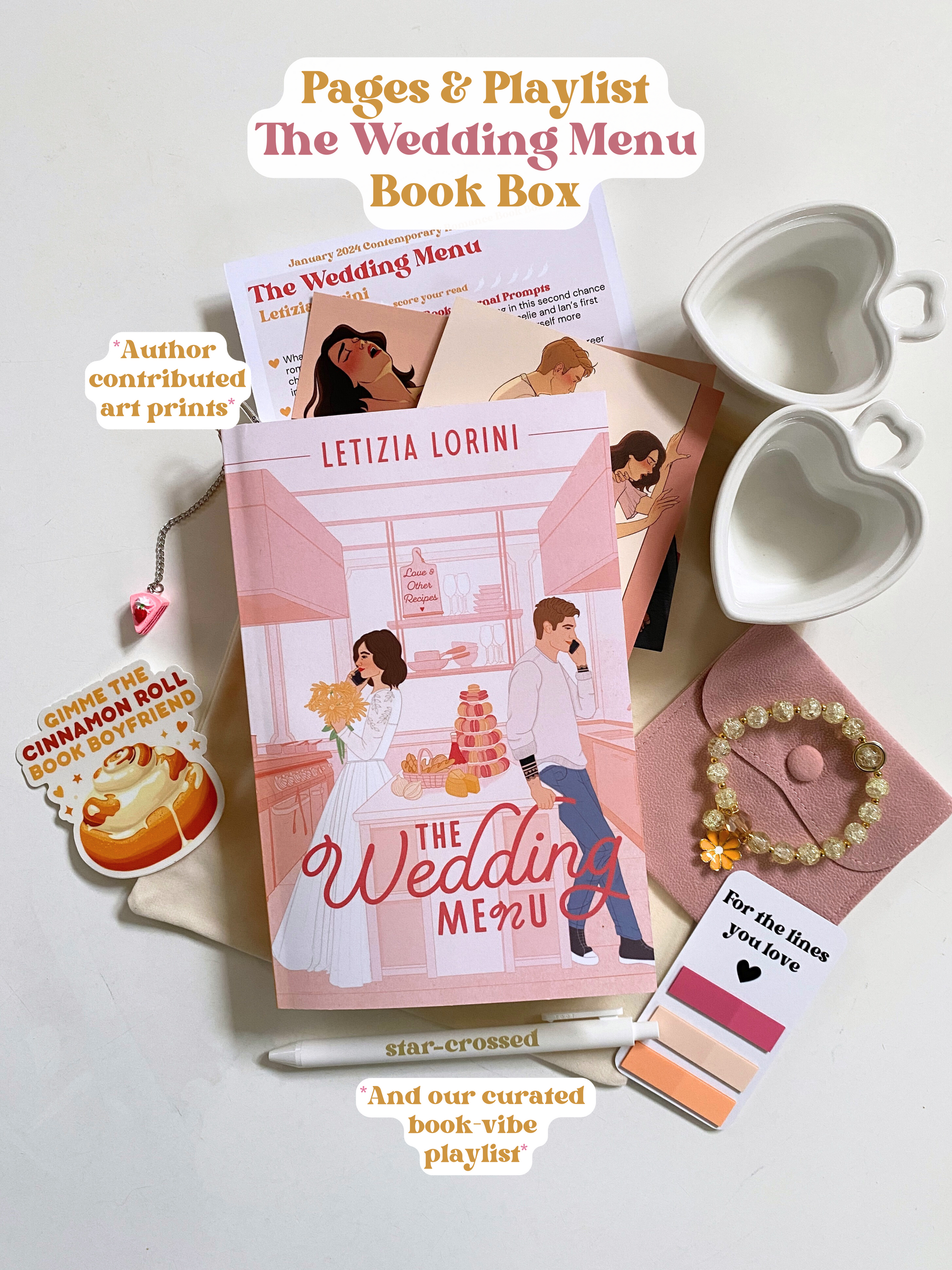 This second chance romance will have you experiencing all the emotions, including the gasps, the giggles, the “omg this MAN”s. Plus not only is this cover an absolute stunner for the shelf, but the special merch in this book box is chef’s kiss! 🍰💬🌼💕